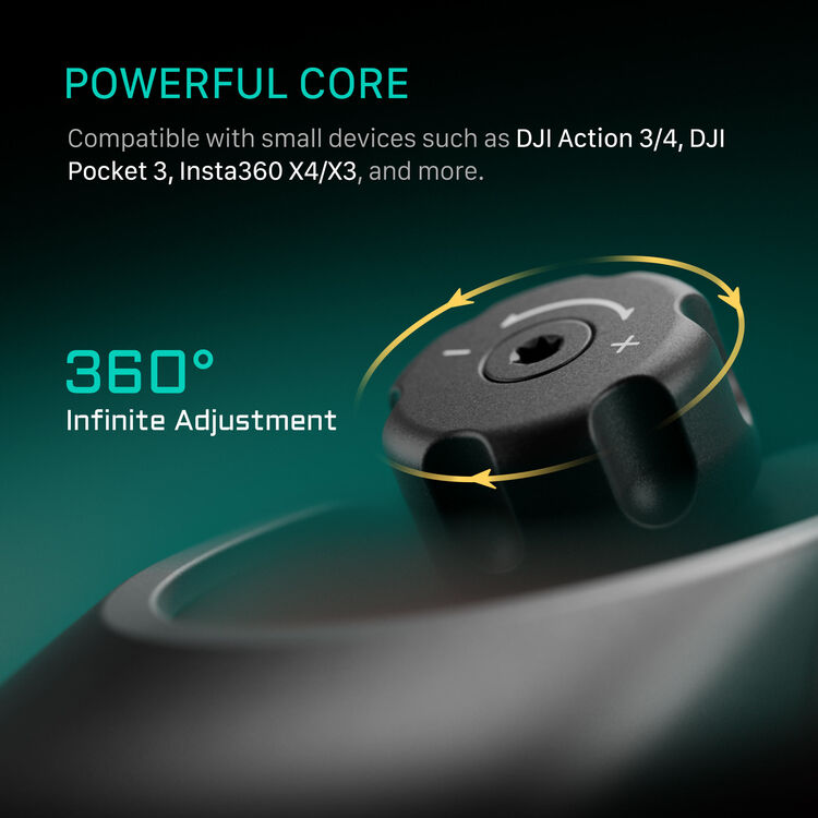 This compact arm system can be used with the DJI Action 3 and 4, the Pocket 3, and the Insta360 X3 and X4.