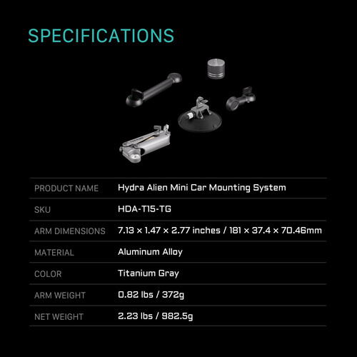 Tilta Hydra Alien Mini Car Mount Kit with Electronic Suction Cup (Titanium Gray)